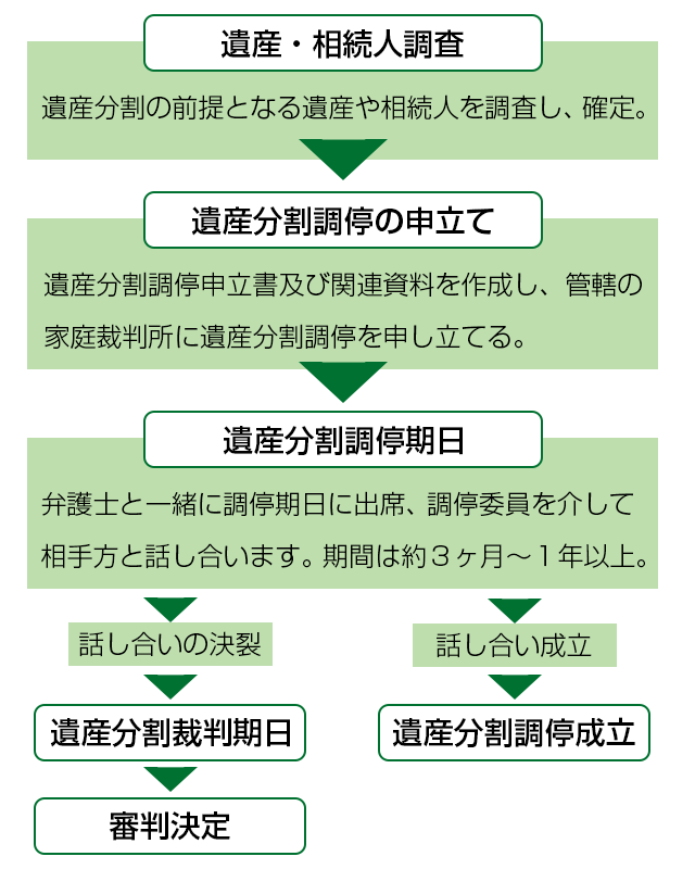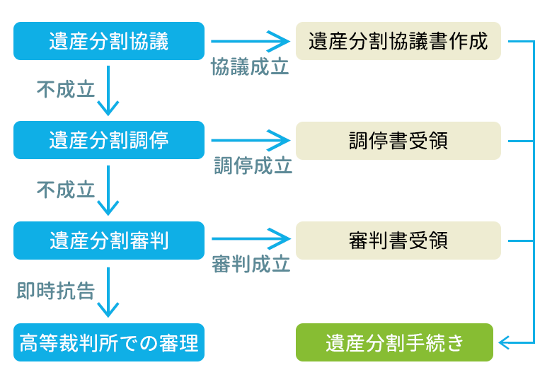 ■「遺産分割協議」で合意が不成立な場合 → 家裁による「遺産分割調停」ここで合意すれば「調停調書」の作成 調停で合意できなければ さらに 家裁による「審判分割」へ