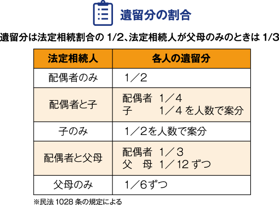 ・( )内は遺留分 兄弟姉妹に遺留分はない