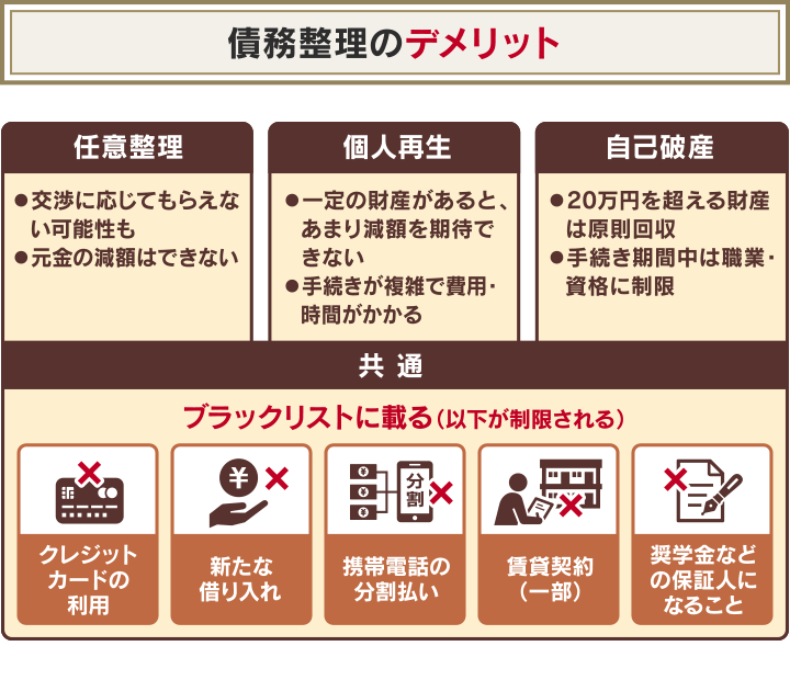 | ブラックリスト | 借金完済から5年 | 認可決定から10年 | 免責許可から10年 |