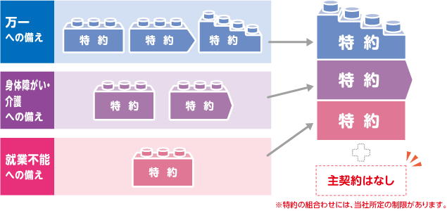 A:「組み立て型保険」保険会社が提供する保障の中から必要なものを選んで組み合わせる