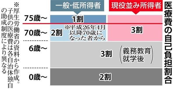 *平成20年4月から 70歳以上75歳未満の窓口負担は 1割に据え置かれていたが 平成26年4月以降 新たに 70歳になる被保険者から段階的に2割に引き上げられている