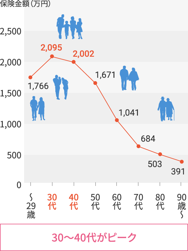 | 「病気・ケガや万一の時の経済的影響は年齢とともに小さくなる」 一方 保険料は 一般的に加入者の年齢が上がると高くなる |