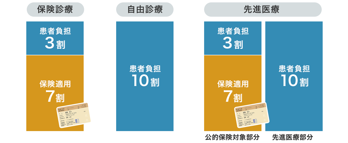 | 治療には 健康保険が適用される「保険診療」と 適用されない「保険外診療(自由診療)」があり 原則として保険外診療がある場合は医療費全額が自己負担になる