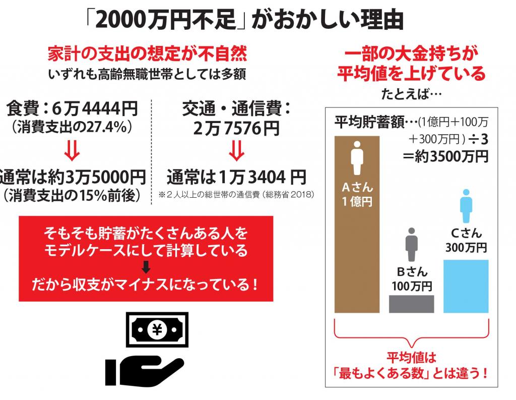 いきなり 55万円の不足になったりする)という数字のマジックの他にも「2000万円(不足)問題」がおかしい理由は たくさんあります |