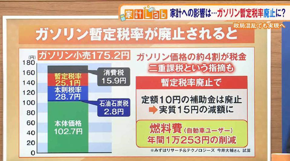 | 家計改善 対策⑧ 暫定税率の廃止(ガソリンについては 2025年12月31日 軽油については 2026年4月01日の廃止が決定) |
