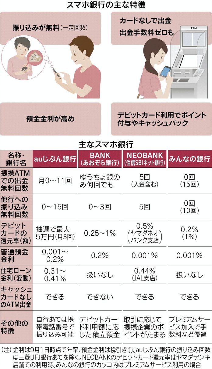 (注)スマホ銀行は 一般の銀行と比べサービスが限られている場合も多い 例えば 住宅ローンを取り扱っていない 公共料金の引き落としができないなど
