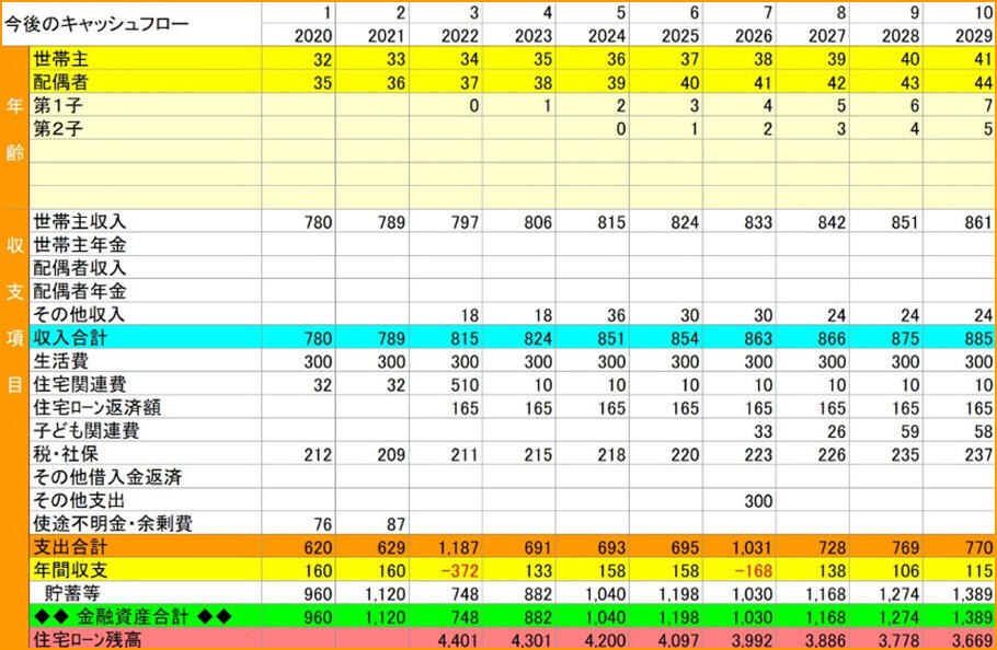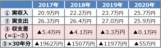 ・その間の家計収支がずっと毎月5.5万円の赤字