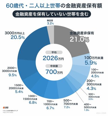 ・高齢夫婦無職世帯の平均純貯蓄額(貯蓄ー負債)は 2484万円