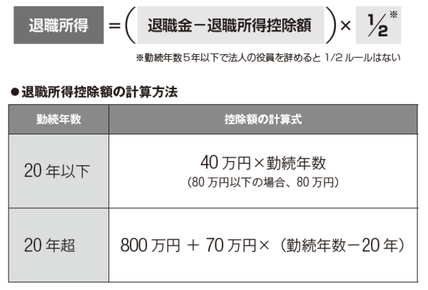 | 所得区分 | 退職所得 (一時金額-退職所得控除)X 1/2 |