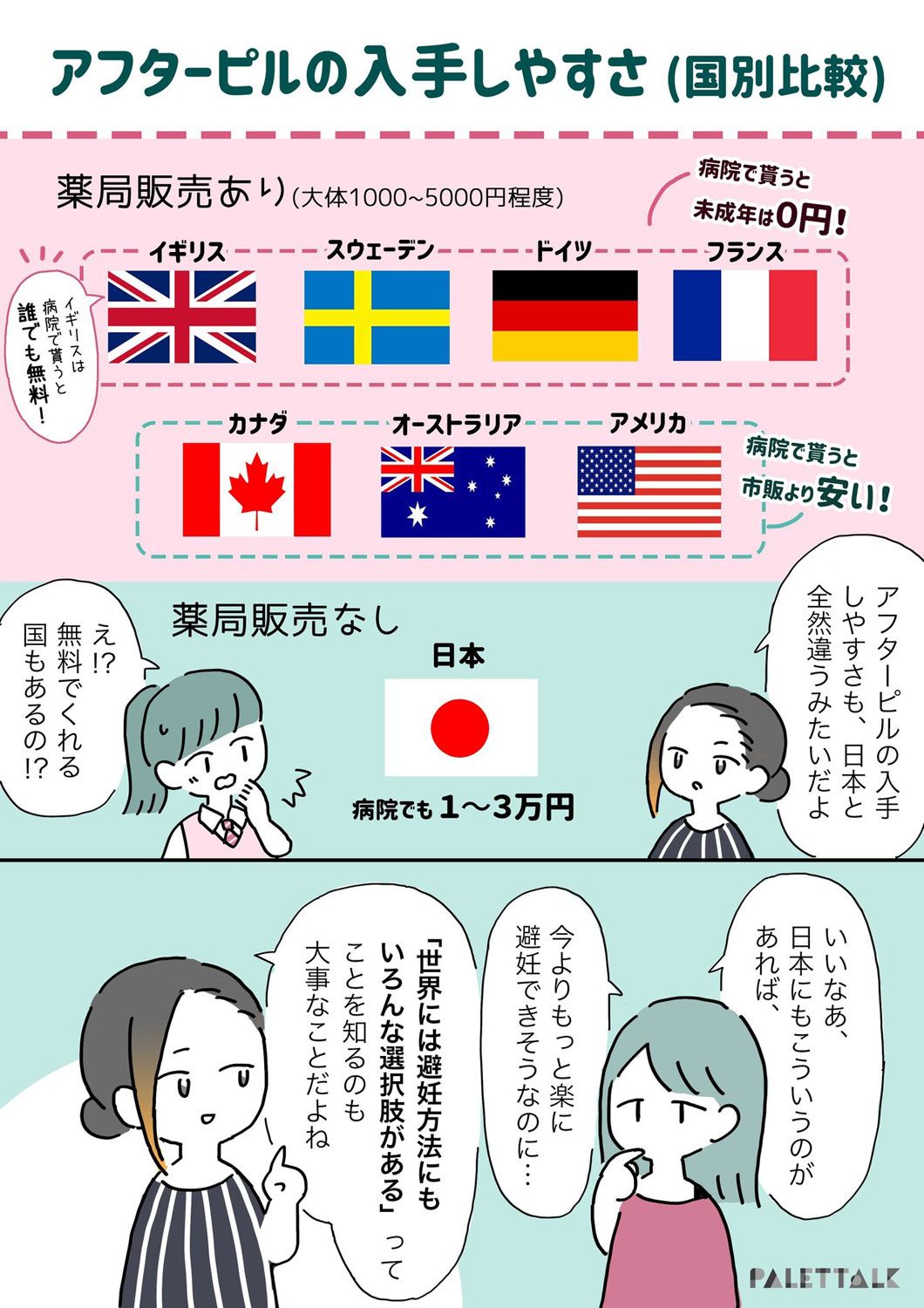 ・上図「みんな知ってる?世界の避妊グッズ」「アフターピルの入手しやすさ(国際比較)」の出典:文春オンライン