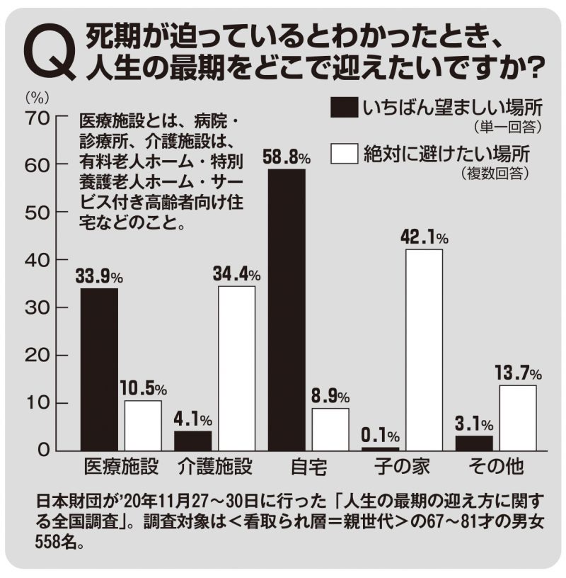 「特定施設」は「要介護重度化の受け皿」「終の棲家としての機能」を果たしていると言えそうですが 「終の棲家」として「看取り」の希望があれば受け入れるとしているのは「特定施設」の全てではありません その理由とし「夜間は看護職員がいないから」(施設による)が最も多く「家族等の意見が一致しないから」が続く