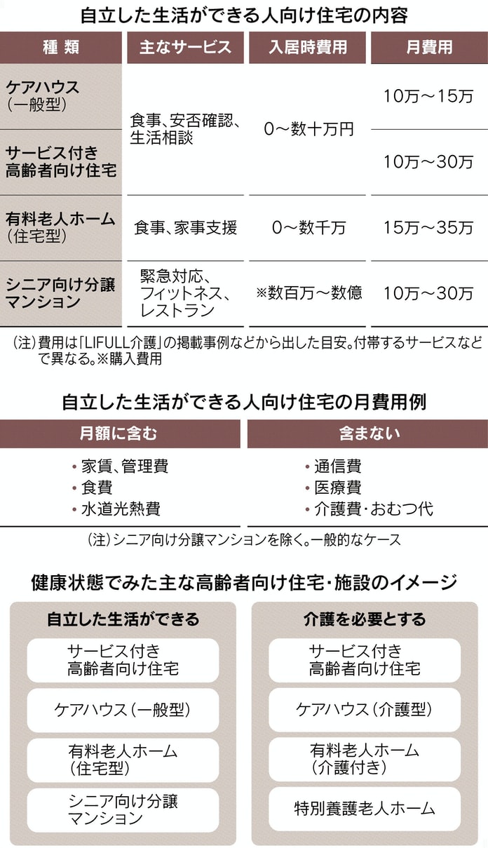 | サービス付き高齢者向け住宅 | 有料老人ホーム(住宅型など) | シニア向け分譲マンション | |