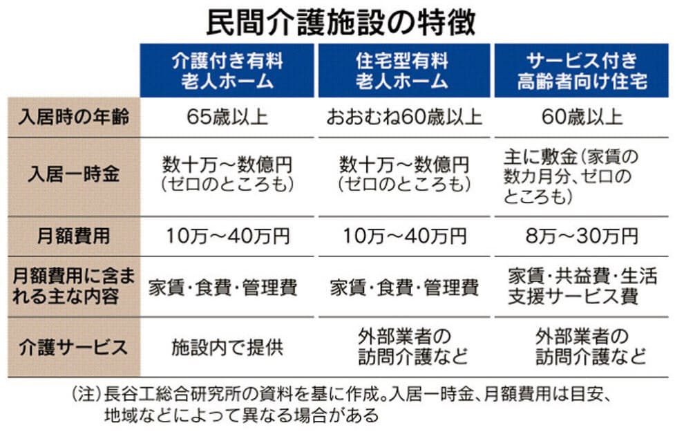 * 「ケアハウス (= 軽費老人ホームC型)」・「都市型軽費老人ホーム」( 助成制度があり 低所得の高齢者も入居できる)