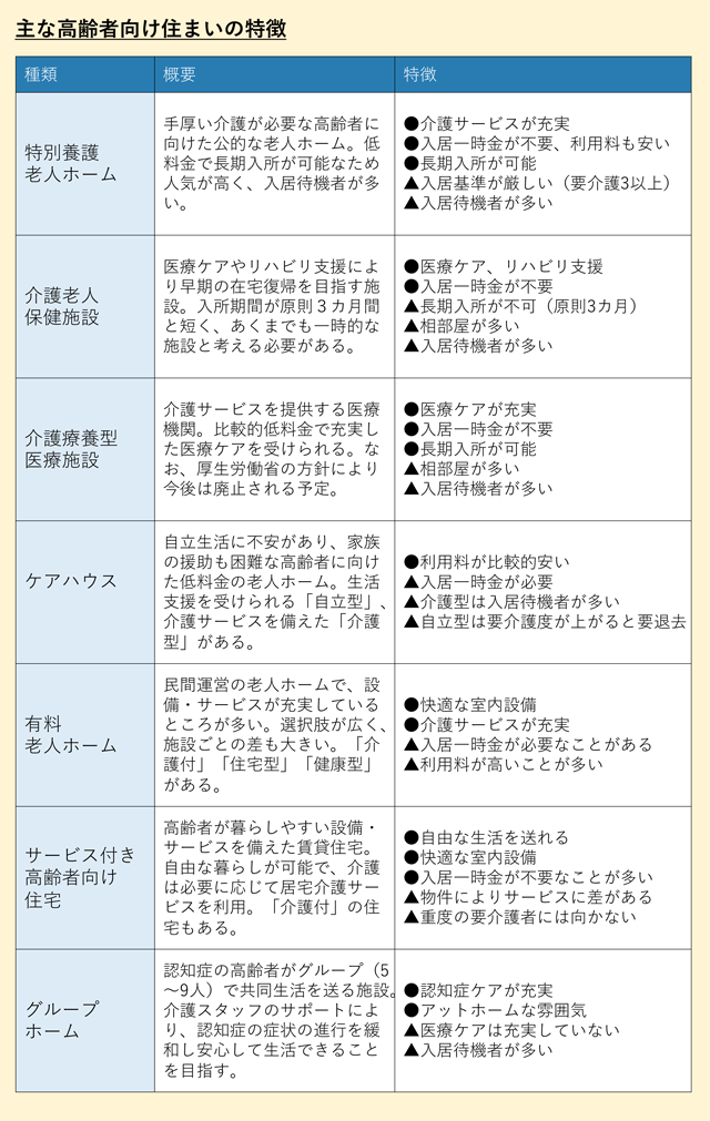 快適で安全な生活を送ることが難しいとなった場合は 有料老人ホームやグループホーム、特別養護老人ホームなど 介護体制が整った施設への住み替えを考えることに