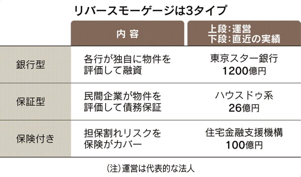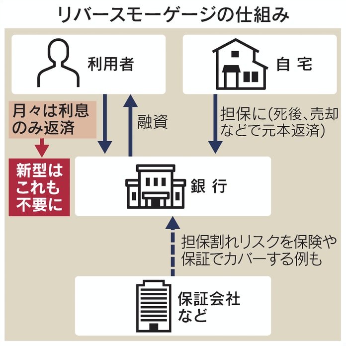 (通常のモーゲージ(=抵当・担保)ローンでは年月と共に借入残高が減っていくが この制度では逆に増えていくのでリバースモーゲージと呼ばれる