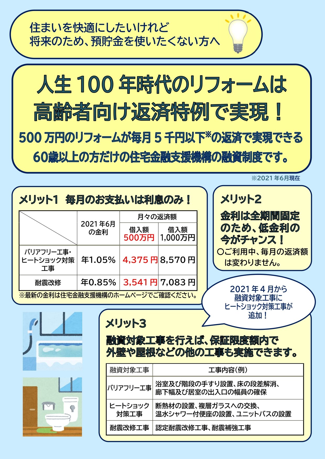 → 「高齢者向け返済特例制度(リフォーム融資)(住宅金融支援機構)