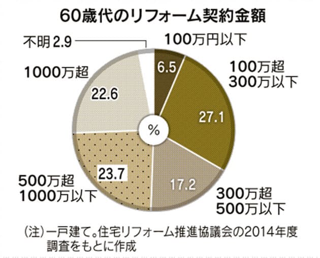 | 「老後に備えるリフォームは早めにしておくことは大切」高齢になると一般的に身体機能が低下し 日常生活で転んだり落下したり また「ヒートショック」(心筋梗塞や脳卒中につながりかねない)等の事故にあう可能性が高まる 特に注意を要するのが自宅 介護に備え 税の優遇制度等も活用し 優先順位を決めて 費用を見積もり 貯蓄等で備えていきたい どこかのタイミングで インスペクション(建物状況調査)(建築士など専門家が建物の劣化状況などを調べる)を利用する事は大切 工事が必要となる部分や時期が概ね把握できるので 計画的にリフォーム資金の貯蓄ができる また 防水工事等 予防的に実施するほうが費用が安くなる場合も多く 早めのリフォームは効果が大きい |