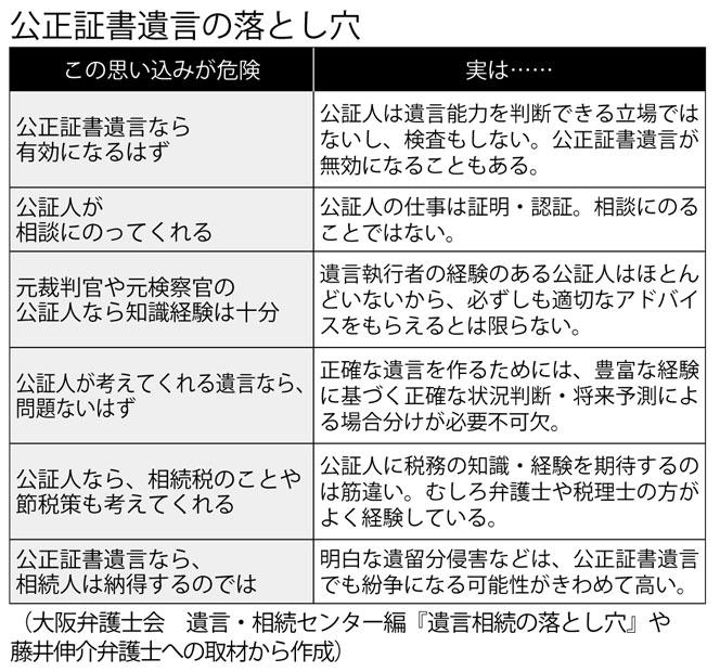 ・遺言の内容を証人(2人必要)公証人に知られてしまう ・必要書類収集に手間がかかる ・費用がかかる(遺言の目的となる財産の価格に応じて法令で手数料が決まっている) |