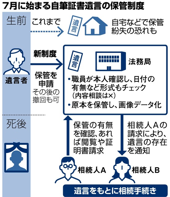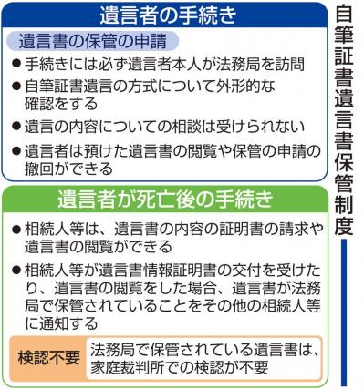 | *法務局による自筆証書遺言書の保管制度(検認不要)がスタート(2020年施行) |