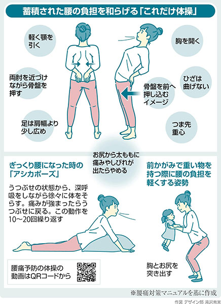 | ・「体幹」体幹(腹筋・背筋など)が弱いと姿勢が崩れて腰に負担がかかり 痛みが生じやすくなる |