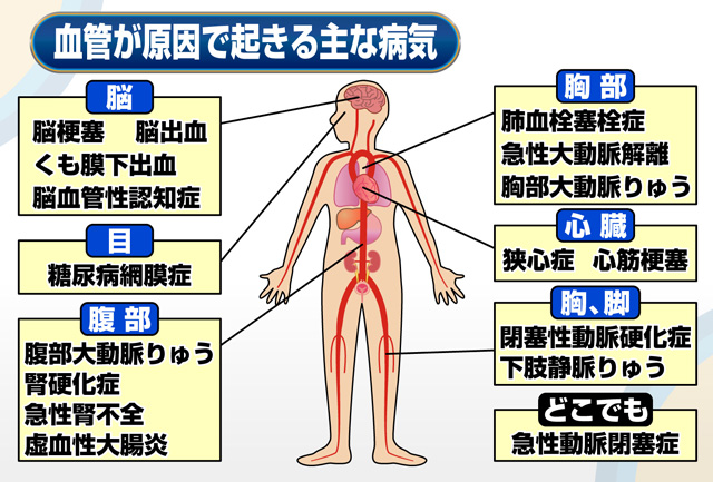 | 人間のカラダには くまなく血管が張り巡らされている 毛細血管(全身の血管の99%を占める 0.01mmと目に見えないほど細い)まで含めるとその長さは約10万キロ!地球2周半!(心臓から出た血液は