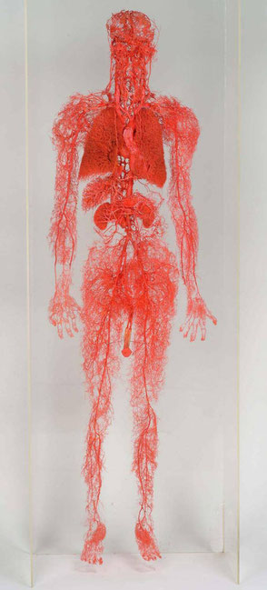 この長い距離をたった50秒で一周して、また心臓へ戻っていく!?) また血管を構成する基本細胞(*内皮細胞)の面積は約7000㎡!テニスコート約27面分!血管は「人体最大の臓器」 貧しい想像力を超えています まさに「人体の神秘」 全ての人間の体内の血管はみんな こんな感じなのです |