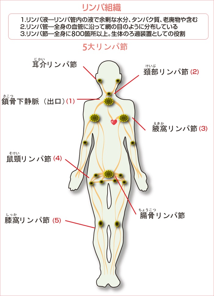 | ・リンパは:フィルター機能を持つ体の器官(場所)例えるならば「下水道」「浄水場(フィルター)」 ・ツボは:刺激することで効果が得られるツボ(ポイント)例えるならば「浄水場の近くの 流れを良くするポイント」 |