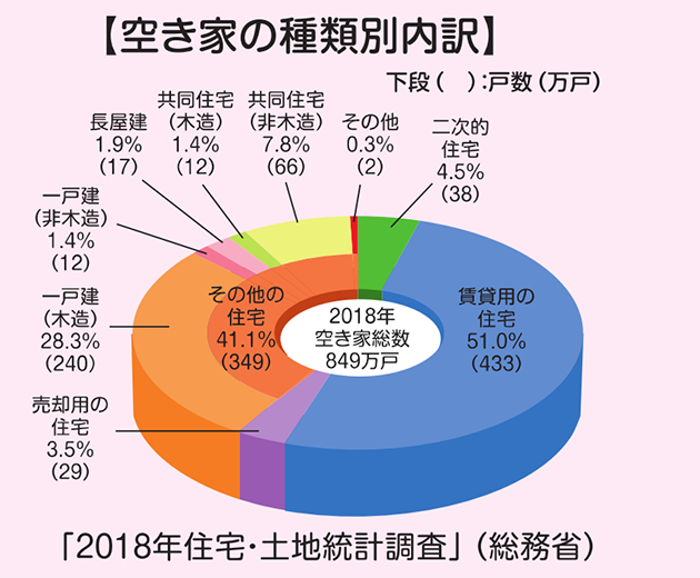 | ■(上図より)数が最も多いのが 433万戸にのぼる「賃貸用」の空家(空き家の半分は 相続対策などで慢性的に供給過剰の賃貸用)これらは 数は多いものの